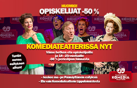 - ostettavissa tuntia ennen esityksen alkua vain Komediateatterin Lipputoimistosta