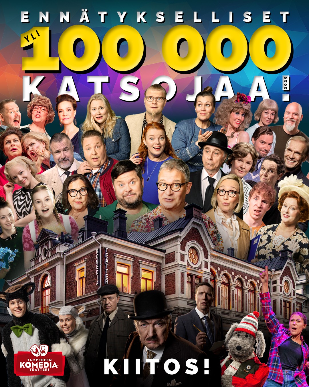 Vuonna 2025 Komediateatterissa vieraili ennätykselliset yli 100 000 katsojaa, ja olemme siitä sydämellisesti kiitollisia.